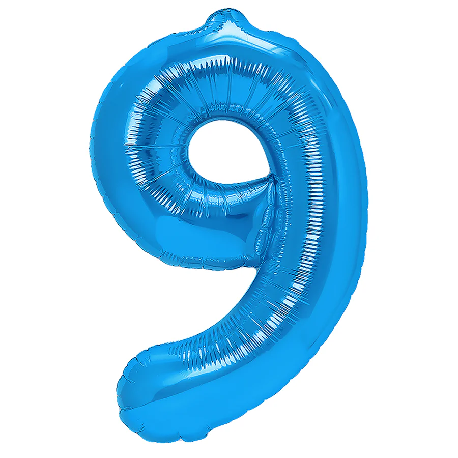 Balon Folie Cifra 9 80cm, Albastru Metalic