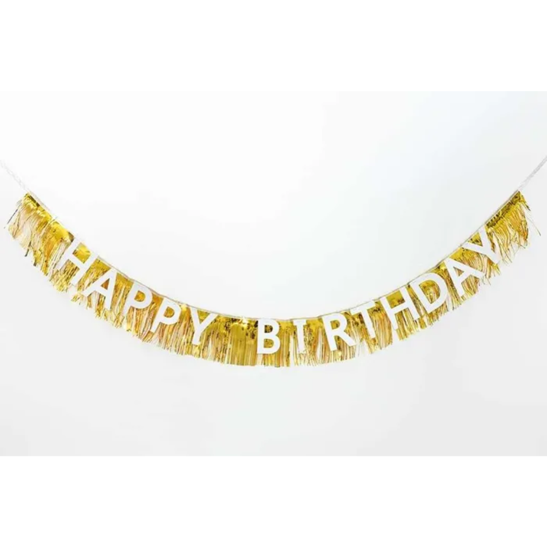 Banner Aniversar ,,Happy Bhirthday cu Franjuri Aurii 300 x 20cm