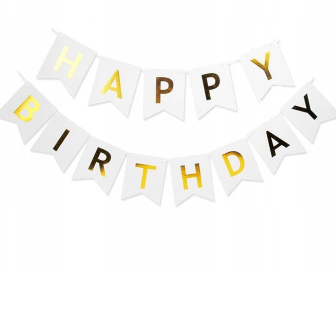 Banner Happy Birthday – Alb cu Litere Aurii – 180 cm