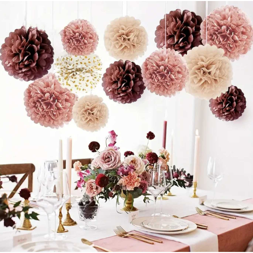 Pom-pomii :  sunt  flori mari din hartie de matase diafana ,cu un aer festiv ,potriviti pentru orice petrecere.