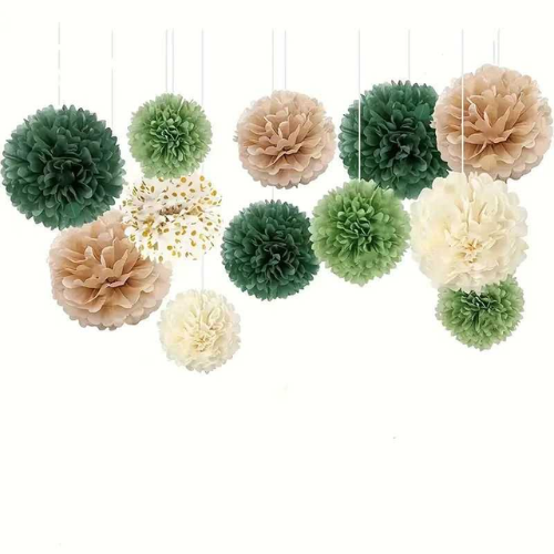 Ghirlanda Decorativa Pompoane si Rozete Verzi,12bucati