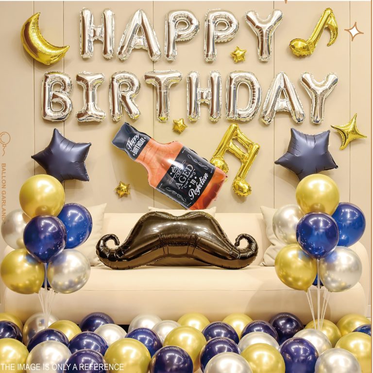 Set Ghirlanda Happy Birthday cu Sticla Whisky si Mustata-43 Bucati