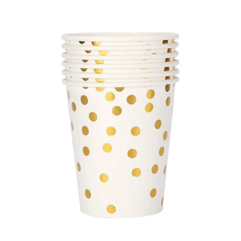 Pahare De Hârtie Albe cu Buline Aurii , Set 10 buc