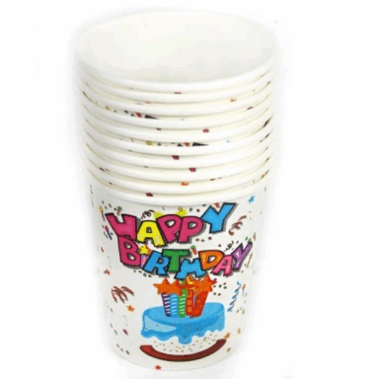 Pahare de Hârtie cu Happy Birthday, Set 10 Buc