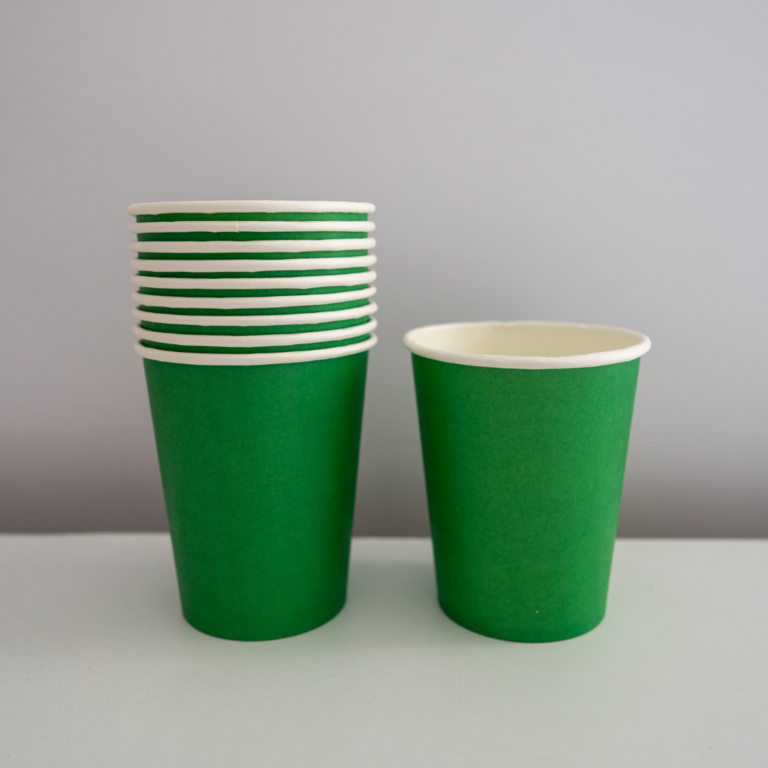 Set 10 pahare carton, unica folosinta, 260 ml , Verde