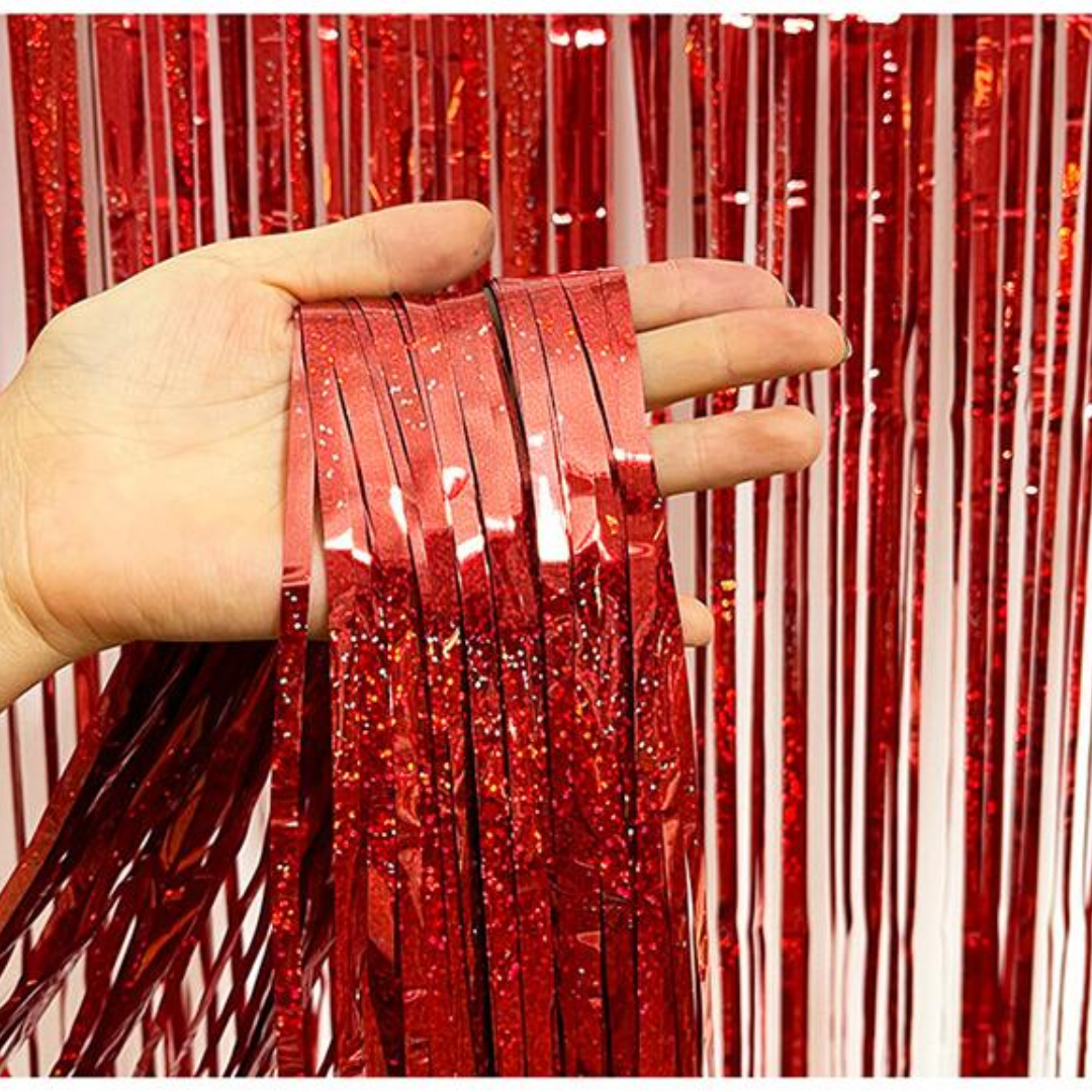 Alege această perdea holografica rosie de petrecere și combin-o cu accesorii baloane pentru a transforma orice eveniment într-un moment de neuitat, oferindu-i o notă elegantă și festivă.