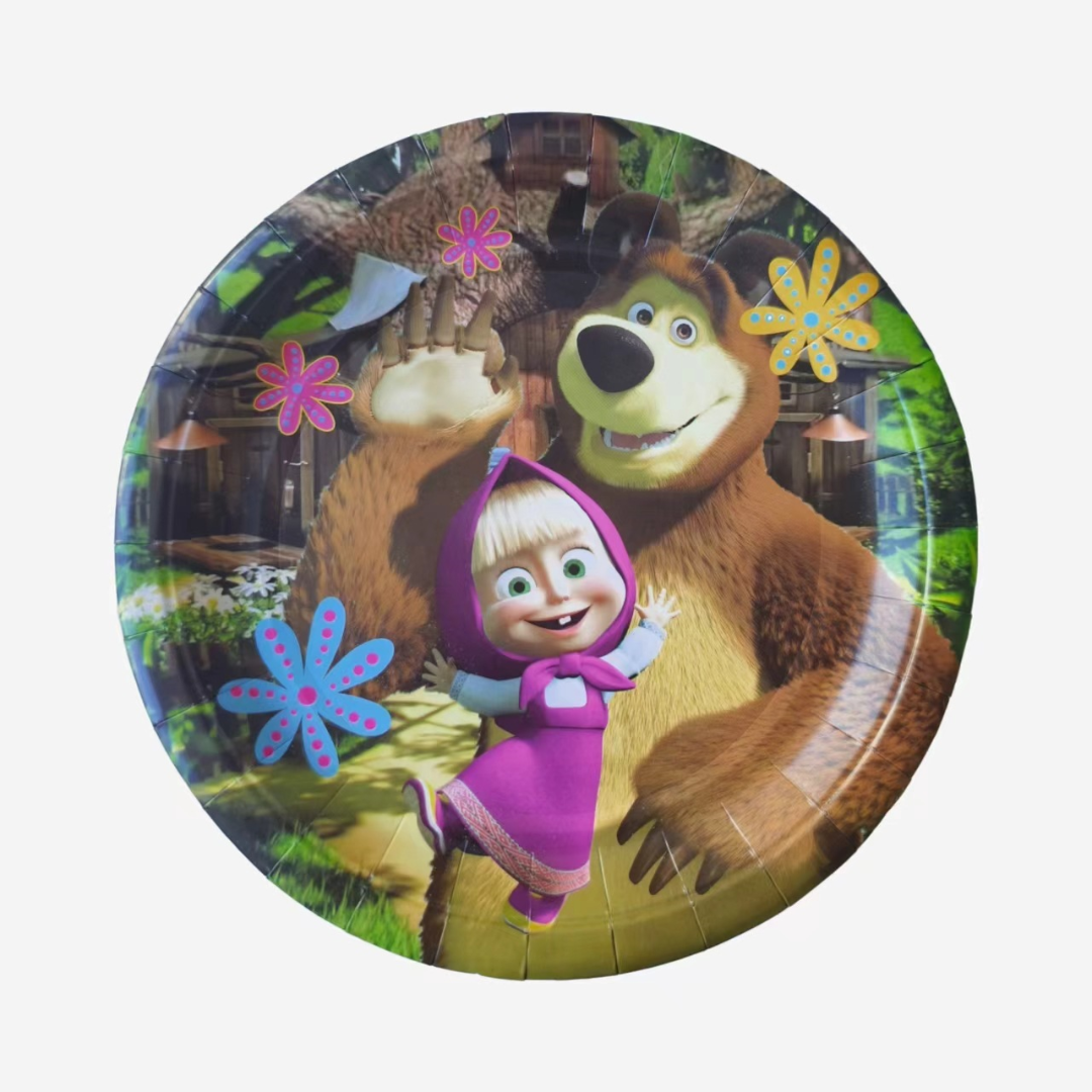 Adu zâmbete și voie bună la petrecerea celor mici cu aceste farfurii tematice Masha și Ursul! Designul colorat cu personajele îndrăgite din desenul animat va transforma masa festivă într-un moment plin de distracție și magie.