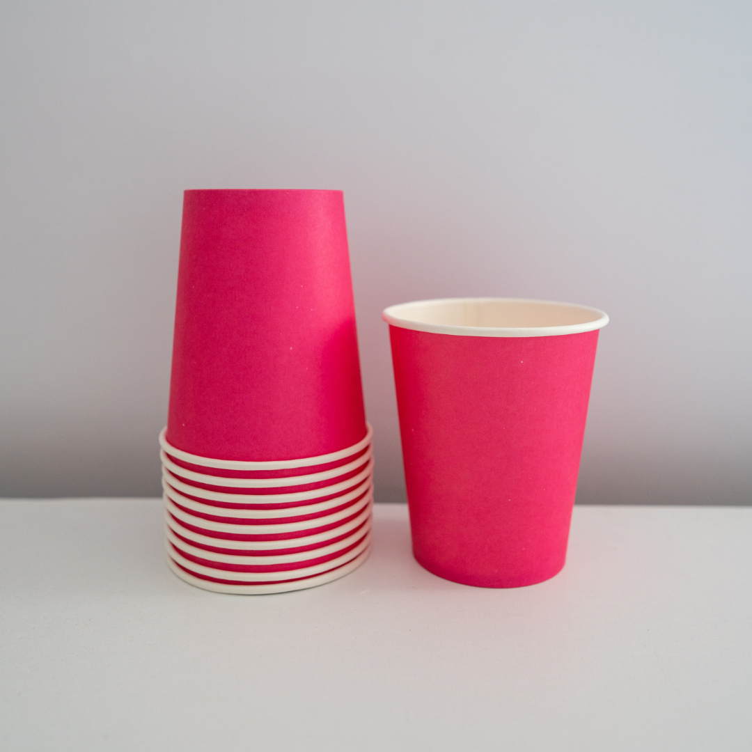 Set 10 Pahare din Carton 260 ml – Roz Fuchsia  | Pahare Colorate pentru Petrecere